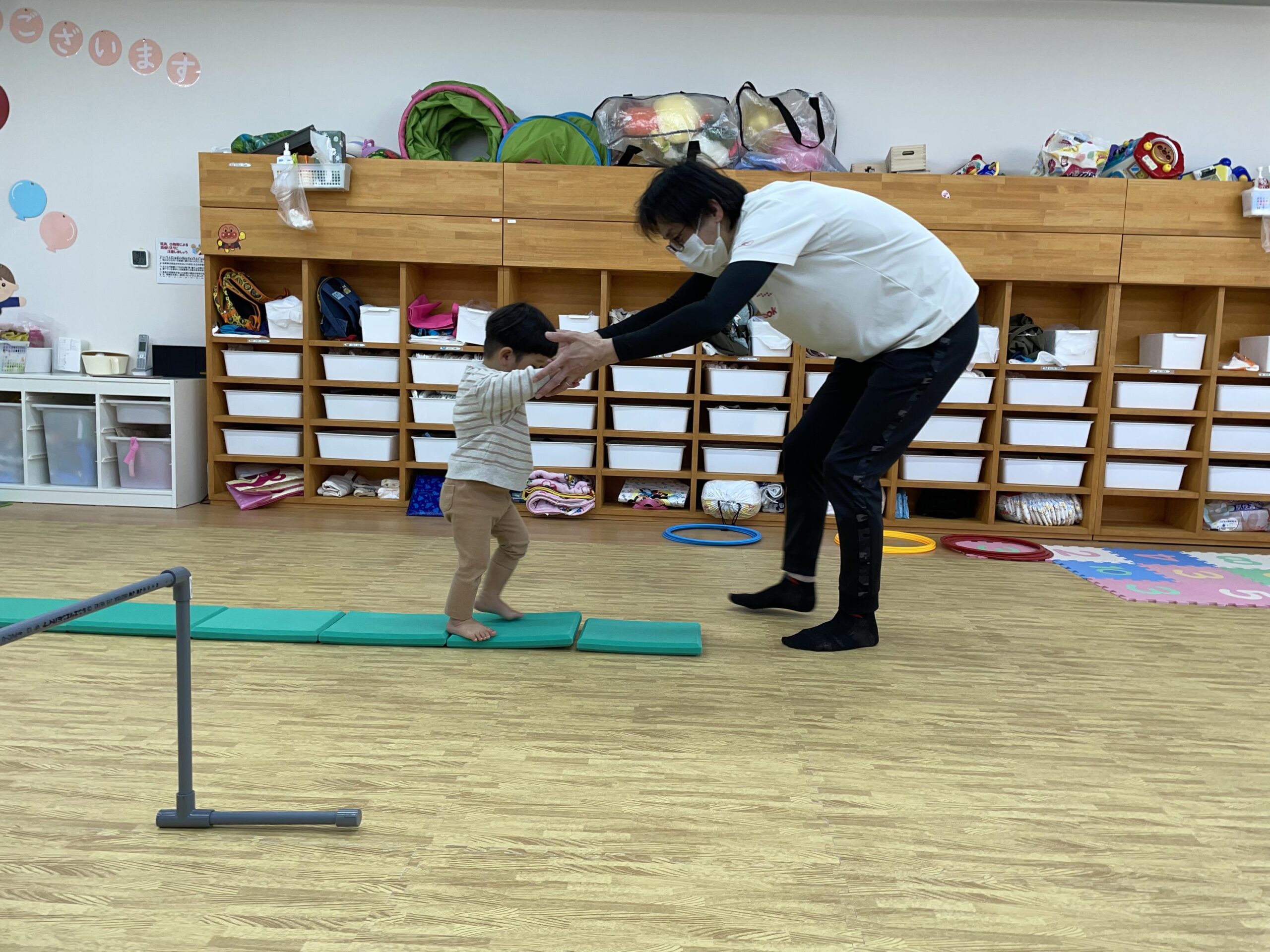 平均台を歩いています(*^-^*)♡ コーチと一緒に歩くから安心だね♪