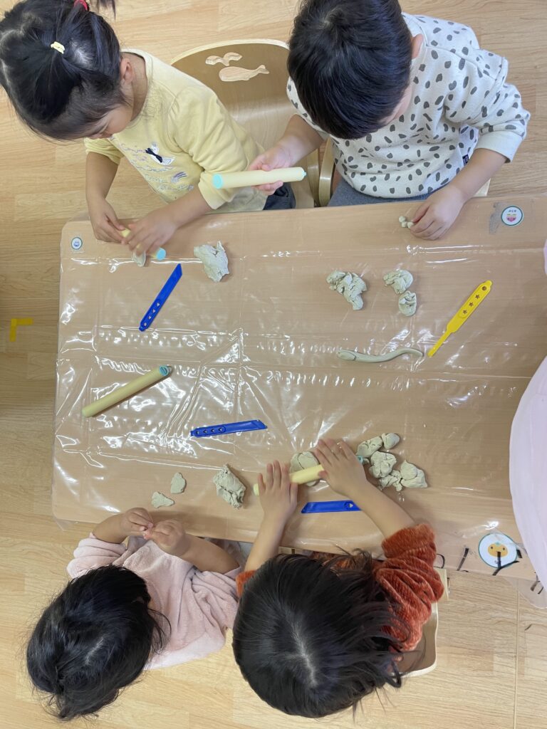 ねんどあそび♪ 2025.01.24ブログ HOME ブログ ブログ ねんどあそび♪ 今日は保育室内でねんどあそびをしました✨ 2歳児クラスになってくると色々な形を考え作って遊ぶことができる子どもが増えてきます✨ たくさんコネコネしてとても楽しそうでした!! Tweet Share +1 Hatena Pocket RSS feedly Pin it ブログ お正月給食🎍 避難訓練を実施しました! 関連記事一覧 体操~はぐくみ日記~ 2023.08.04ブログ 🍧かき氷にシロップをかけたら…?色が変わった!🍧 2025.07.31ブログ お水遊び(かめ組さん🐢) 2024.08.21ブログ 休憩タイム~はぐくみ日記~ 2023.09.11ブログ
