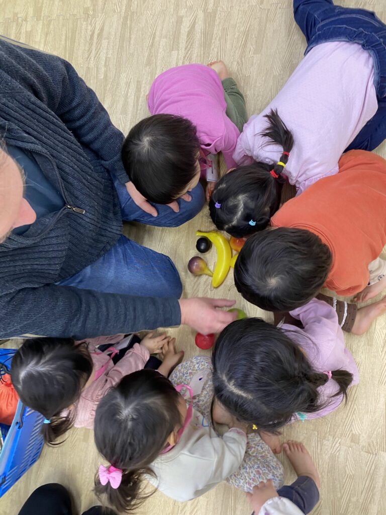 曲に合わせて英語の歌を歌ったり、パズルやおもちゃを使いながら英語を覚えたり、遊びながら英語に触れ合います♪