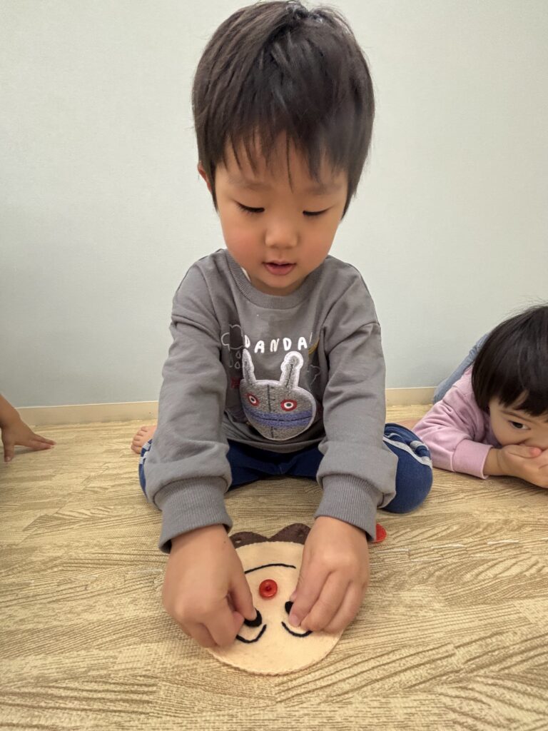 ひも通しやボタン留めなど、指先をたくさん使う遊びに挑戦✨