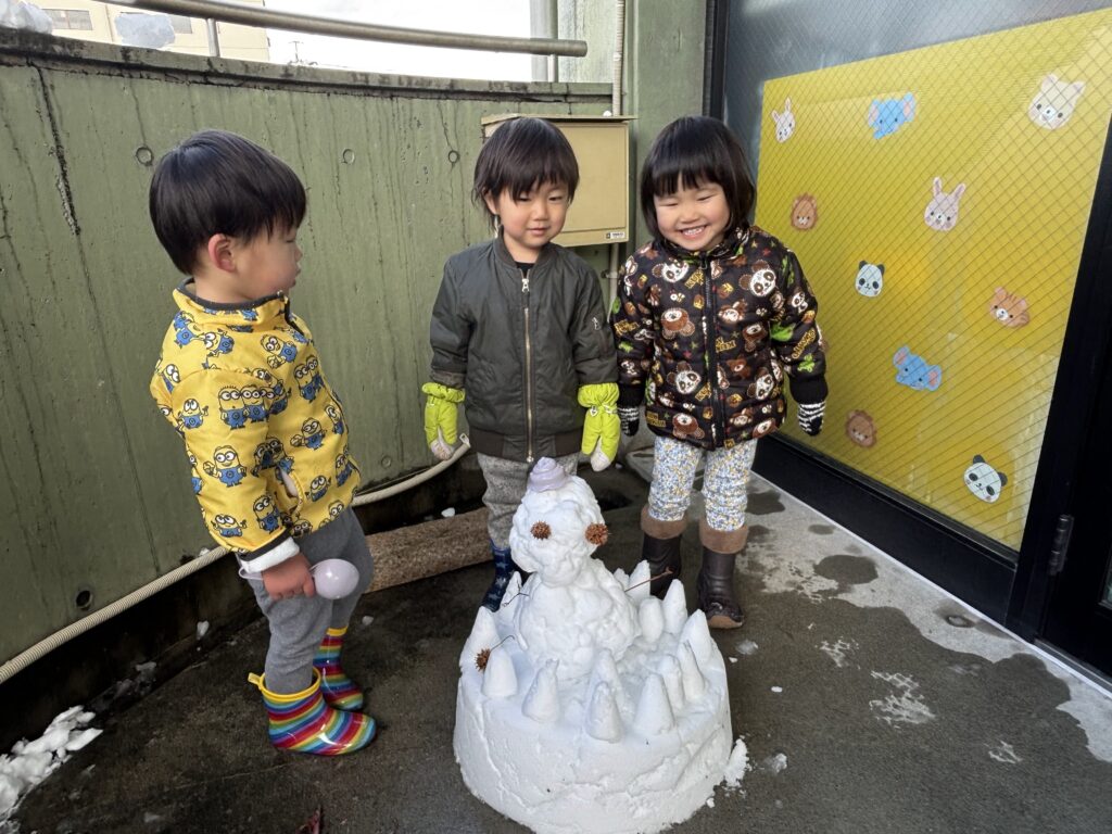 雪だるまの形になると、「できた!」と嬉しそうな表情を見せたり、じっと見つめたりする姿が見られました。